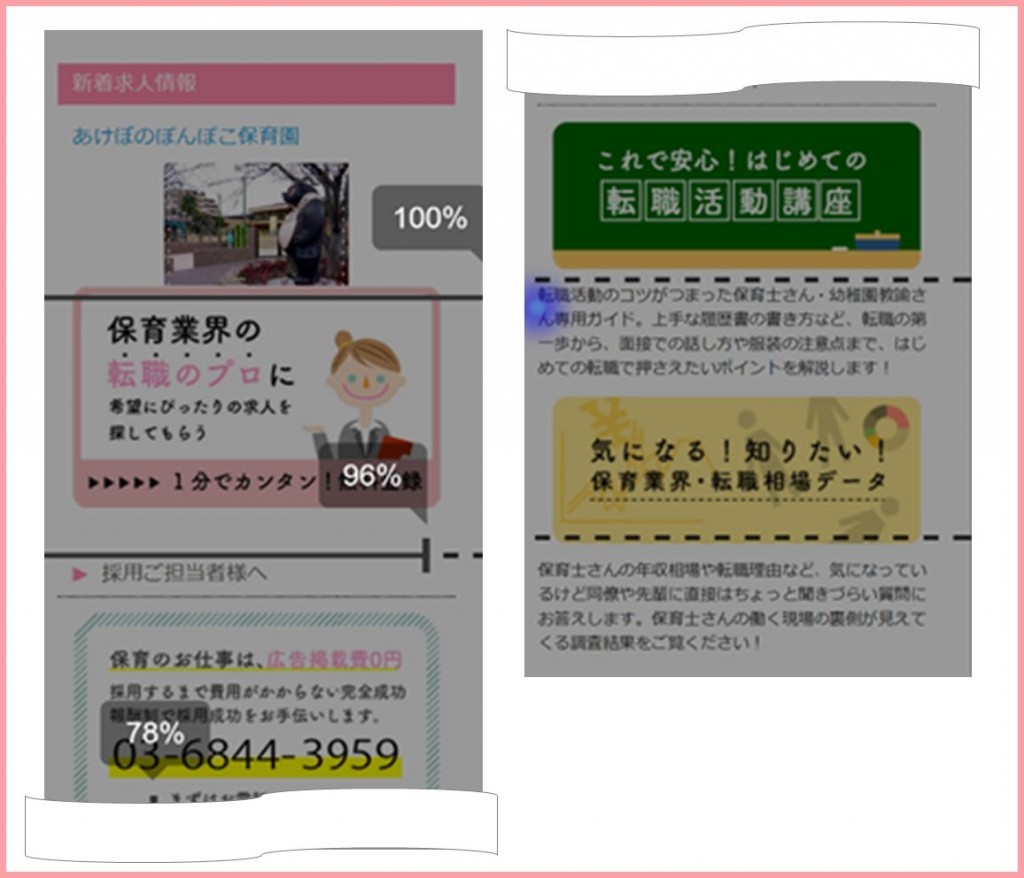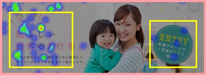對(duì)banner左側(cè)的文字感興趣的用戶在頁面左側(cè)進(jìn)行了點(diǎn)擊。這些用戶沒有立即進(jìn)行職位檢索,他們對(duì)這個(gè)網(wǎng)站能做什么、是什么概念等等還抱有疑問。也就是說「適合自己的工作」是指的什么還不清晰。按照文字的介紹內(nèi)容,把用戶引導(dǎo)到相關(guān)的內(nèi)容頁是上佳修改選擇。另外,關(guān)于注冊按鈕做的更像按鈕的感覺,在視覺上讓用戶一眼就看出來點(diǎn)擊此處會(huì)跳轉(zhuǎn)到注冊頁面。