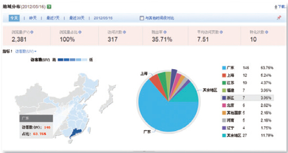 ◆ 對于已經(jīng)進(jìn)行了推廣的地域,可以及時(shí)地了解在該地域的推廣策略是否帶來了足夠的訪客,以及這些訪客對網(wǎng)站內(nèi)容是否足夠感興趣,借助這些信息可以進(jìn)一步評估在該地域的推廣方案的合理性,并且不斷地調(diào)整與優(yōu)化。