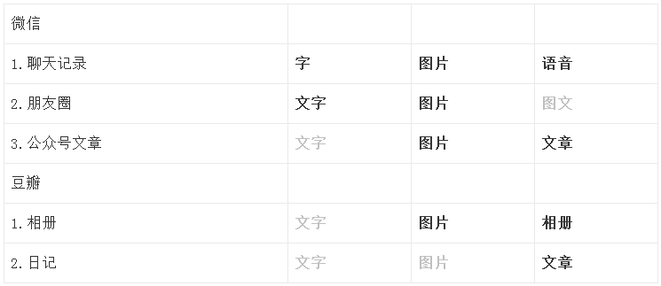 豆瓣中,“最小單位”是產(chǎn)品中信息生產(chǎn)的基本格式。相冊(相冊中的每一張圖片可以單獨(dú)瀏覽并進(jìn)行收藏)、日記文章。微信中,“最小單位”是文字、圖片、語音、視頻信息的基礎(chǔ)層級,你可以單獨(dú)收藏朋友圈中的文字、圖片,微信公眾號文章里的圖片。