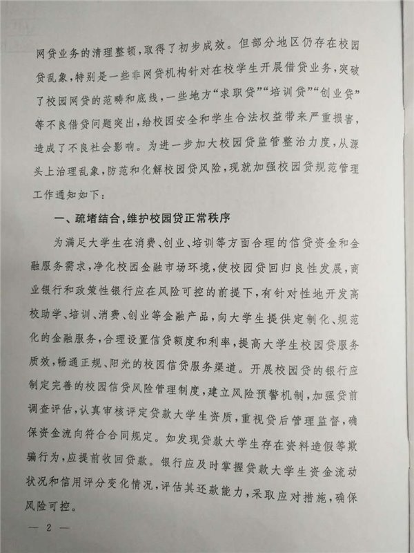 《通知》指出,六部委聯(lián)合發(fā)布《關(guān)于進一步加強校園網(wǎng)貸整治工作的通知》以來,部分地區(qū)仍存在校園貸亂象,特別是一些非網(wǎng)貸機構(gòu)針對在校學(xué)生開展借貸業(yè)務(wù),突破了校園貸的范疇和底線,一些地方“求職貸”“培訓(xùn)貸”“創(chuàng)業(yè)貸”等不良借貸問題突出,給校園安全和學(xué)生合法權(quán)益帶來嚴重損害,造成了不良社會影響。