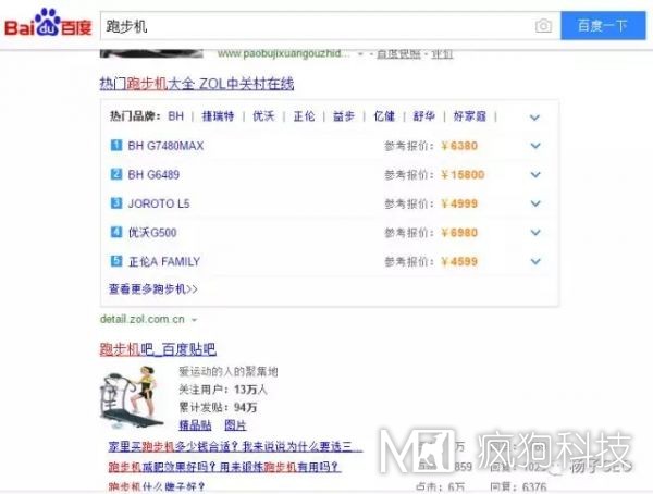 排在第四的是中關(guān)村網(wǎng)站,中關(guān)村是做價(jià)格對(duì)比的,幫助用戶解決關(guān)于跑步機(jī)“價(jià)格”的問題,貼吧也是解決相關(guān)“知識(shí)”的問題。