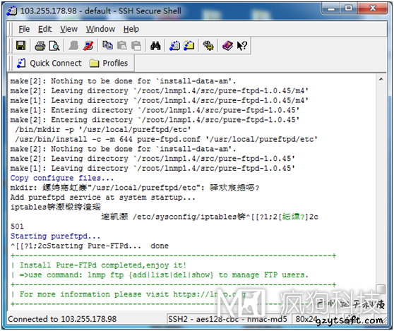 4、輸入FTP賬號對應(yīng)的目錄如:/home/wwwroot/www.gzytsoft.com回車后提示完成。