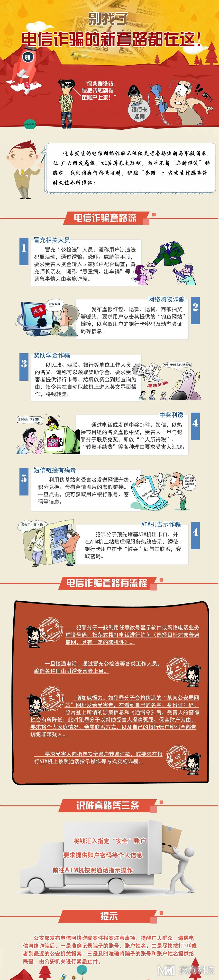 公安部近日公布近期高發(fā)的十類電信網(wǎng)絡(luò)新型違法犯罪手段,提醒社會(huì)公眾謹(jǐn)防上當(dāng)受騙。謹(jǐn)防十類騙術(shù)<騙術(shù)一:假冒公檢法詐騙>犯罪分子假冒警官、檢察官、法官等角色,謊稱受害人涉嫌洗錢、販毒等嚴(yán)重犯罪,誘導(dǎo)受害人將資金轉(zhuǎn)入